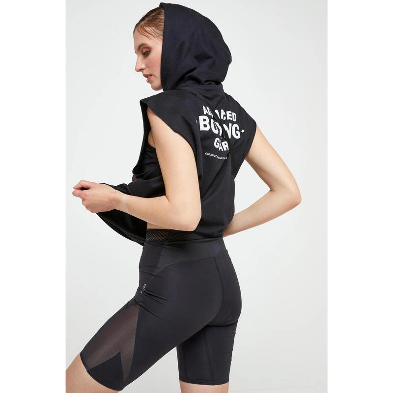 8640923Voor de training van vechtsporten (Engels boksen, full contact, kickboksen, muay thai).Mouwloze hoodie voor de opwarming van boksers. Ruim aan de schouders voor veel bewegingsvrijheid. Met capuchon om je warm te houden op dode momenten.