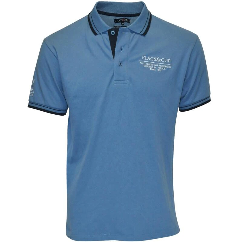 Zeer comfortabele polo met een moderne, chique en casual stijl, geschikt voor alle situaties! Geribde kraag en mouwboorden met tweekleurige biezen. Contrasterende binnenkant van de sluiting. Borduurwerk op het hart. Opdruk op rechtermouw. Contrasterende geweven label op de linker mouw. Flags&Cup logo gedrukt op achterkant kraag. Opdruk op de achterkant van de linkerschouder. Bedrukte Vlaggen&Binnenkant kraag en zijsplitten. Samenstelling : 95% Katoen, 5% Lycra.