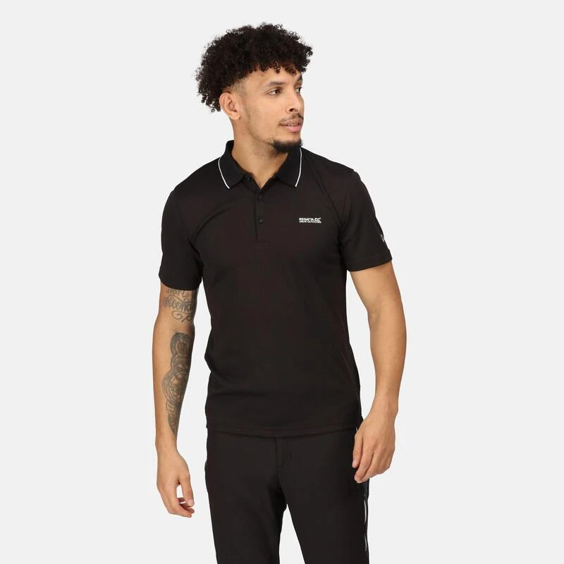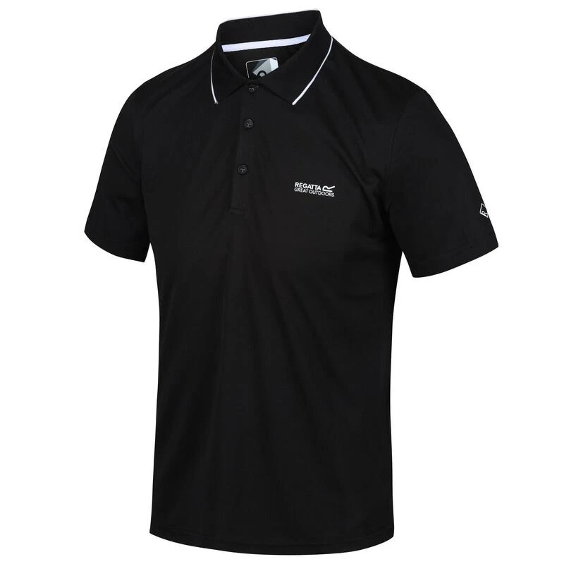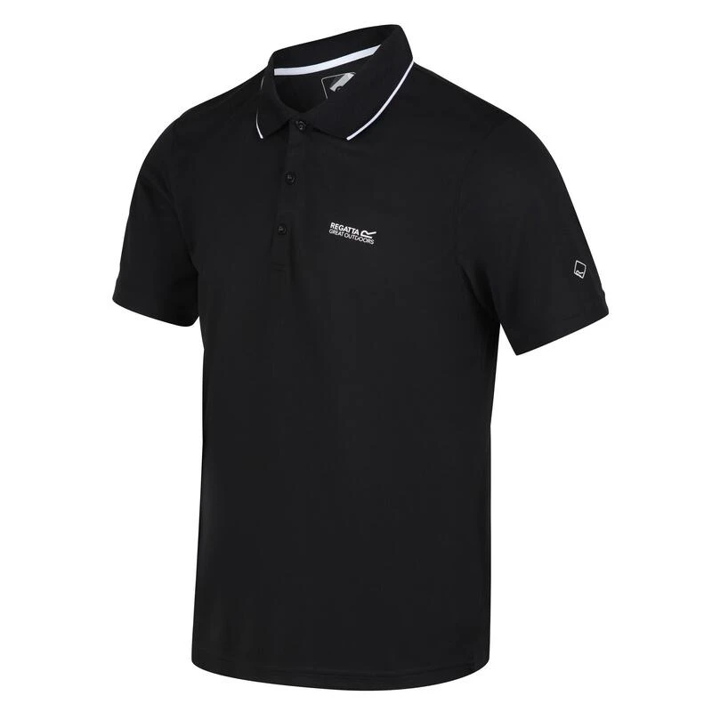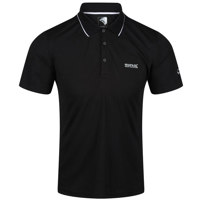 Ons klassieke poloshirt voor sportieve activiteiten. Gemaakt voor comfort bij warm weer.De Maverik voor heren is gemaakt van 100% polyester garen met een geweven constructie van rekbare piquéstof. Deze zachte tech-stof drijft vocht efficiënt af van uw huid, is sneldrogend en voelt koel aan. Gemaakt met een sluiting met een knopenlijst met drie knopen en licht geribde kraag en manchetten – een fantastisch laagje bij het reizen, wanneer u op avontuur gaat met warm weer of voor alledaags gebruik tijdens de zomer. Met onze kenmerkende Regatta Outdoors-opdruk op de borst.